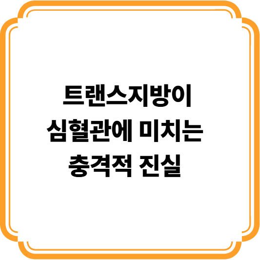 이번 글에서는 트랜스지방이 심혈관 질환에 미치는 구체적인 영향과 예방 방법을 알려드릴게요.